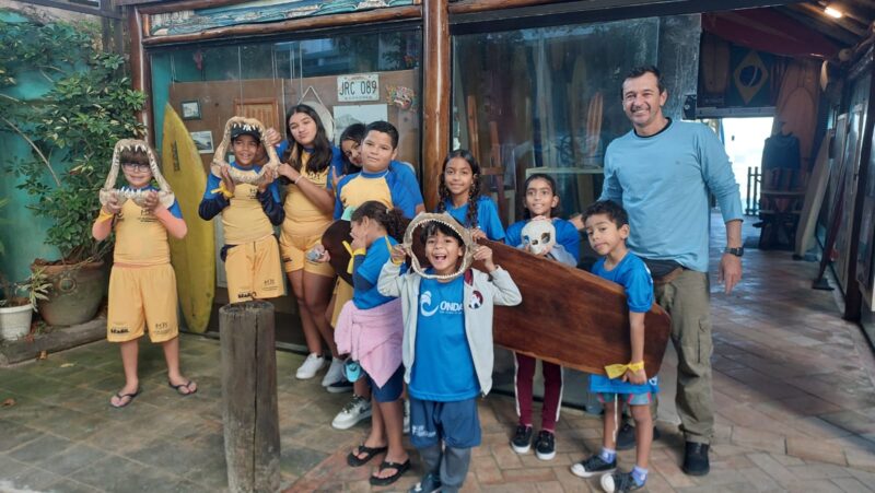 Durante a visita, os participantes tiveram contato direto com elementos históricos do surfe, como pranchas antigas, fósseis marinhos e figuras icônicas do esporte, incluindo o paratleta ‘Pirata’. Assim, a experiência ampliou a compreensão dos alunos sobre os valores do surfe e estimulou reflexões sobre superação, respeito à diversidade e pertencimento ao território.