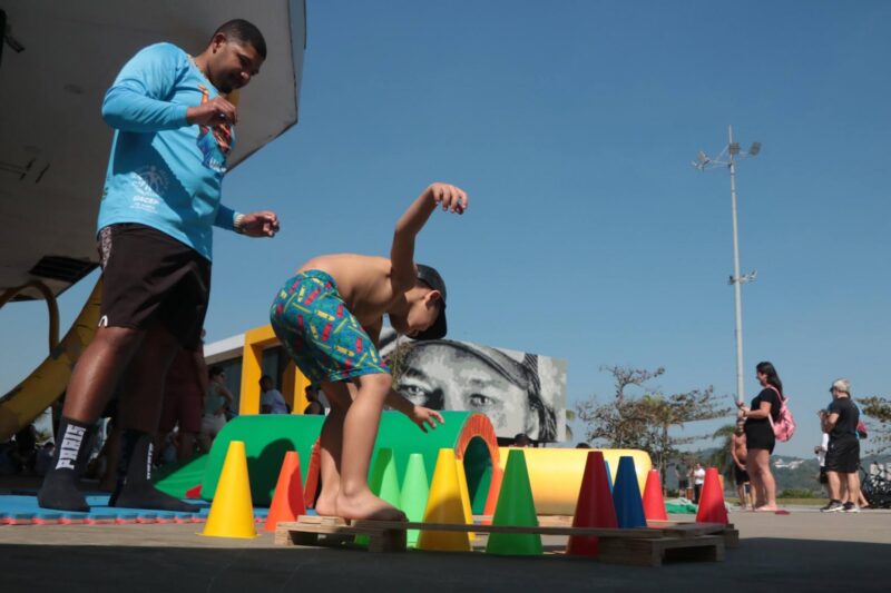 O céu azul e o clima de veranico deram o tom da manhã deste sábado (23) no Novo Quebra-Mar, no bairro José Menino, em Santos. O local foi tomado por risos, brincadeiras e muita energia durante o evento “O Brincar na Primeira Infância”, que integra a programação do Agosto Verde, mês dedicado à valorização dos primeiros anos de vida.