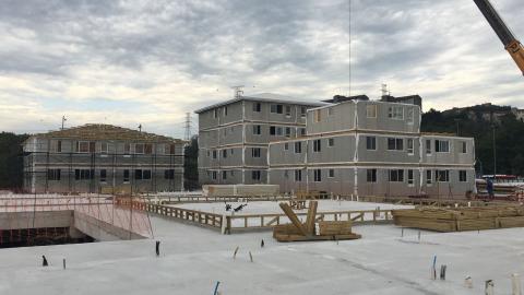Porém, no fim de agosto, o telhado do prédio de quatro andares foi içado. Entretanto, a estrutura de aproximadamente sete toneladas foi instalada em cerca de uma hora. Nesta semana, os 16 apartamentos começaram a receber instalações elétricas e hidráulicas nas cozinhas, banheiros e lavanderias.