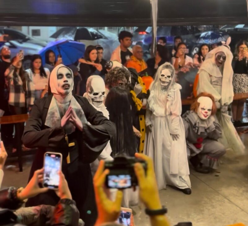 A festa começa às 20h, com concentração na rua e desfile de personagens icônicos do cinema de terror, como Pennywise, Annabelle e a Noiva Cadáver. Os bares e restaurantes da via preparam cardápios especiais e uma decoração totalmente temática para a noite mais sombria do ano.