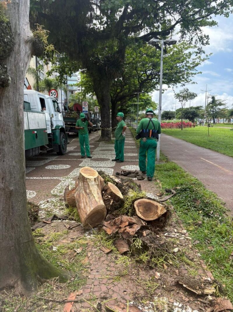 A Prefeitura de Santos iniciou a remoção de árvores mortas ao longo do jardim da orla, no trecho entre os canais 1 e 7. Quatro já foram removidas e outras 11 serão retiradas nas próximas semanas.