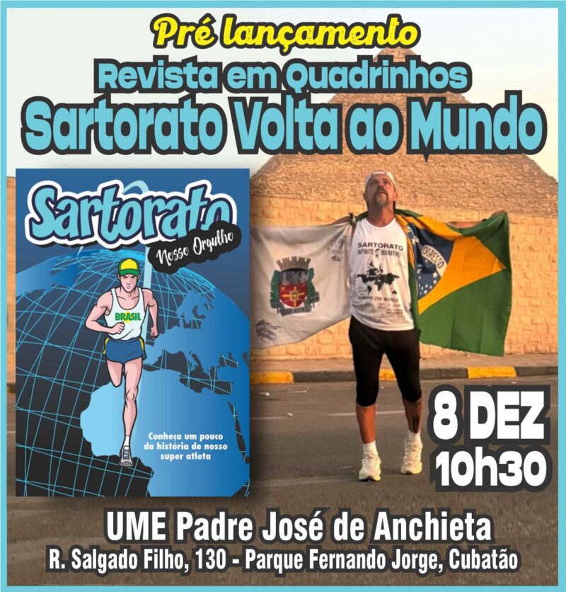 Na próxima segunda-feira (8), às 10h30, o Instituto João Cláudio realiza o lançamento oficial da revista em quadrinhos “Volta ao Mundo – A História de Alexandre Sartorato”. O evento acontecerá na UME Padre José de Anchieta, em Cubatão. Além disso, a cerimônia contará com a presença do secretário de Cultura, Omar Bermedo; da secretária de Educação, Danielli Cristina de Souza; e do secretário de Esportes, Guilherme Maxta. Também estará presente o protagonista da HQ, o ultramaratonista cubatense Alexandre Sartorato.