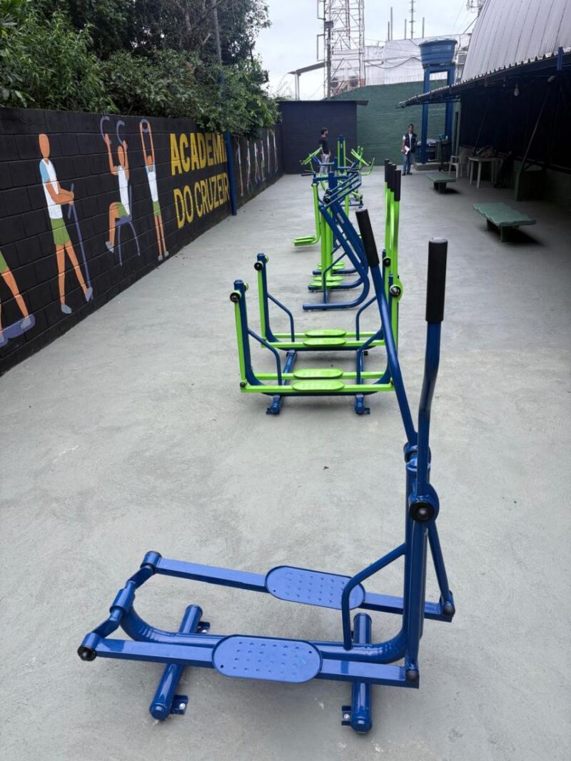 O local agora oferece opções variadas para atividades físicas, como simulador de caminhada, rotação diagonal dupla, simulador de cavalgada e leg press. Os aparelhos ampliam as possibilidades de movimento e incentivam a prática regular de exercícios.