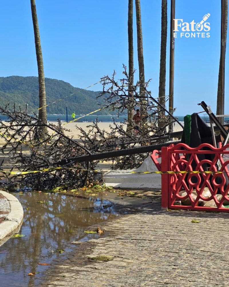 No Gonzaga, a prefeitura desinflou estruturas da Vila de Natal após a queda de árvores decorativas. A administração municipal isolou áreas com risco de desabamento. O Poupatempo de Santos ficou sem energia elétrica e passou a realizar apenas a entrega de documentos já emitidos, enquanto novos atendimentos foram reagendados.