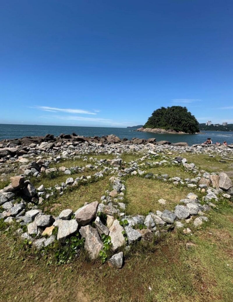 O multiartista Jandé Potyguara idealizou o projeto em parceria com o Instituto EcoFaxina e a produtora cultural Estela Vajda, com apoio da Prefeitura de Santos. A estrutura circular, formada por pedras dispostas no chão, reproduz saberes ancestrais dos povos originários. O desenho indica direções, ciclos do tempo e movimentos do céu.