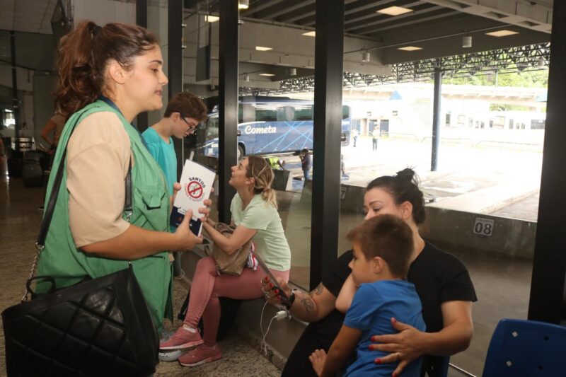 Com o aumento significativo do movimento por conta das férias e das festas de final de ano, a Secretaria de Saúde realizou, na sexta-feira (19), o projeto Orientando Passageiros, na Rodoviária de Santos. O objetivo foi a conscientização sobre a dengue e a Chikungunya e os agentes de combate a endemias distribuíram panfletos e esclareceram dúvidas sobre as doenças e o mosquito transmissor, o Aedes aegypti.