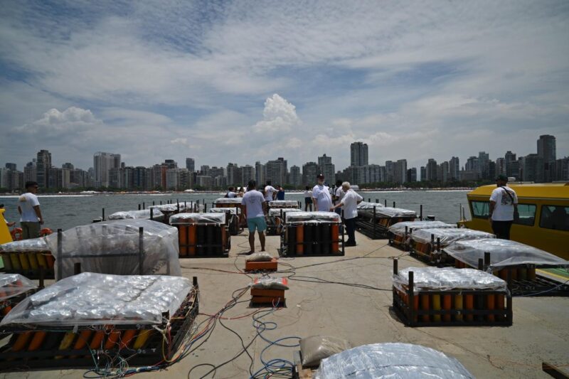 Na manhã desta terça, o prefeito Rogério Santos vistoriou as embarcações, posicionadas ao longo dos sete quilômetros da orla. Cada balsa fica a aproximadamente 400 metros da faixa de areia e mantém a mesma distância entre si. A organização permite que o público acompanhe o espetáculo completo, com composição contínua e equilibrada no horizonte.