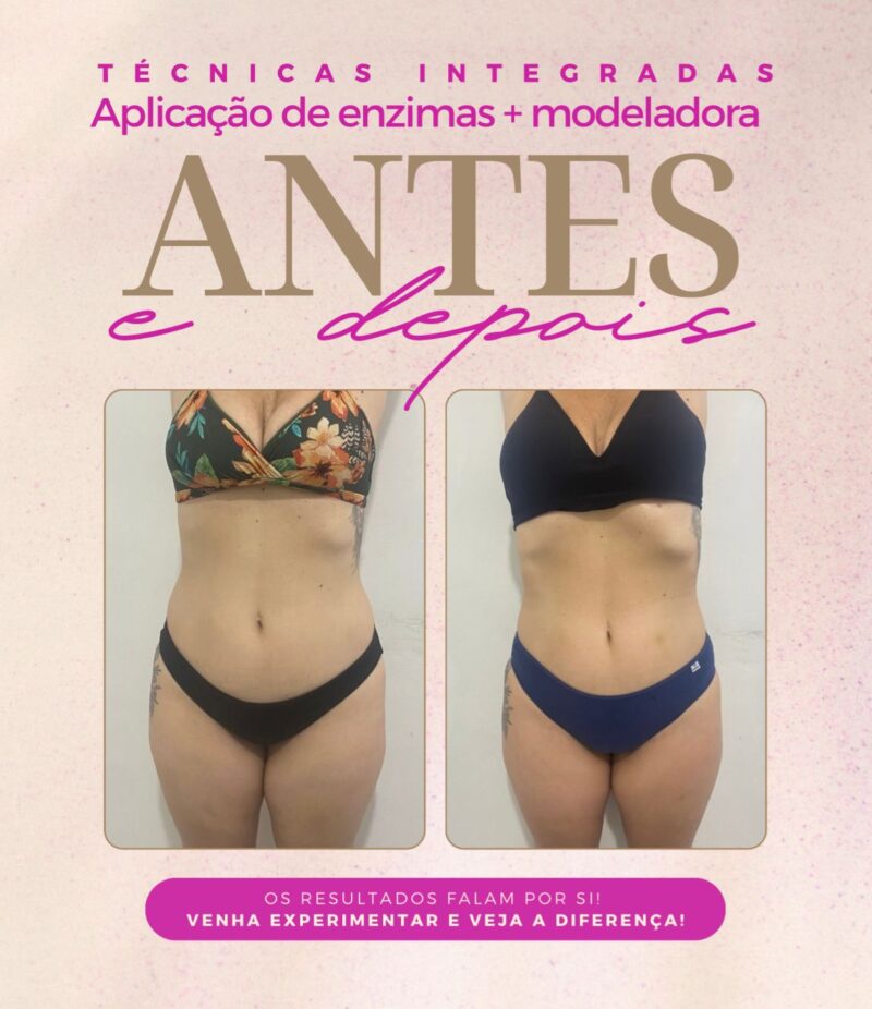 A proposta, portanto, combina técnicas que se complementam. A aplicação de enzimas atua diretamente na redução de gordura localizada, enquanto a massagem drenomodeladora auxilia na diminuição da retenção de líquidos e na melhora da textura da pele. Dessa forma, o tratamento se torna mais completo, com resultados progressivos e visíveis.