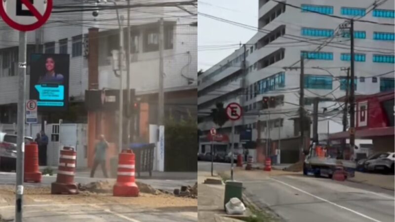 Um vazamento de gás na Rua Osvaldo Cruz, no bairro Boqueirão, em Santos, interditou vias e assustou moradores na manhã desta sexta-feira (20). O gás escapou de um ponto do asfalto aberto, o que levou ao bloqueio da área por segurança.