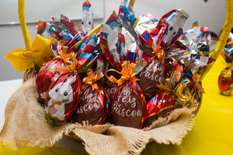 A campanha aceita diferentes tipos de chocolates. Por exemplo, os participantes podem doar ovos de Páscoa, barras de chocolate e outros doces relacionados à data.