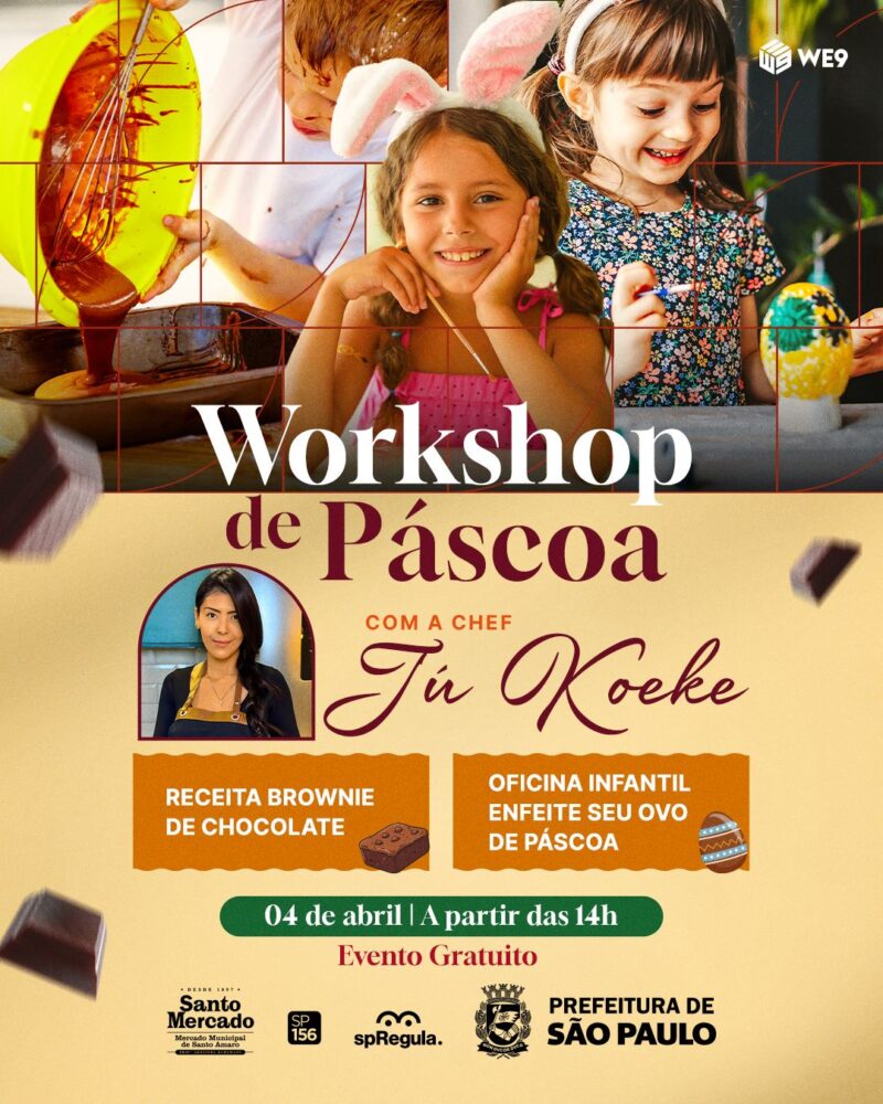 Na sequência, o público infantil poderá participar da oficina prática “Enfeite seu ovo de Páscoa”. A atividade oferece uma experiência sensorial com o chocolate, estimulando a criatividade das crianças. A oficina conta com 30 vagas e requer inscrição prévia.