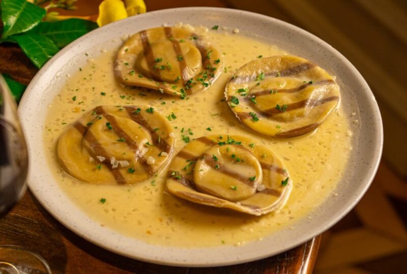 Outra novidade é o raviolone recheado com salmão e alho-poró (R$ 87,90). A massa artesanal é servida com molho de espumante levemente cítrico, que valoriza os ingredientes e equilibra o prato.