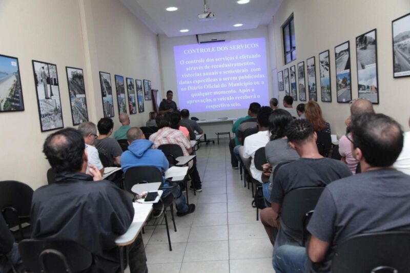 A formação inclui sete temas: Legislação Municipal, Direção Defensiva, Legislação de Trânsito, Noções de Mecânica, Primeiros Socorros, Relações Humanas e Turismo.