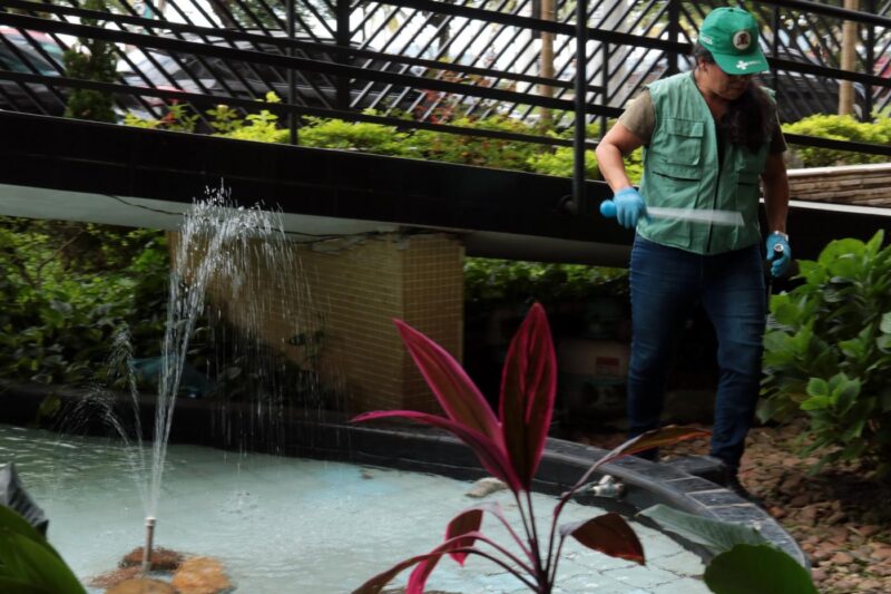 Ela explicou que os agentes inspecionam não apenas apartamentos, mas também garagens, áreas de lazer, piscinas, churrasqueiras e salões de festas. Segundo ela, até fontes decorativas precisam de manutenção adequada e água tratada com cloro para evitar a proliferação do mosquito.