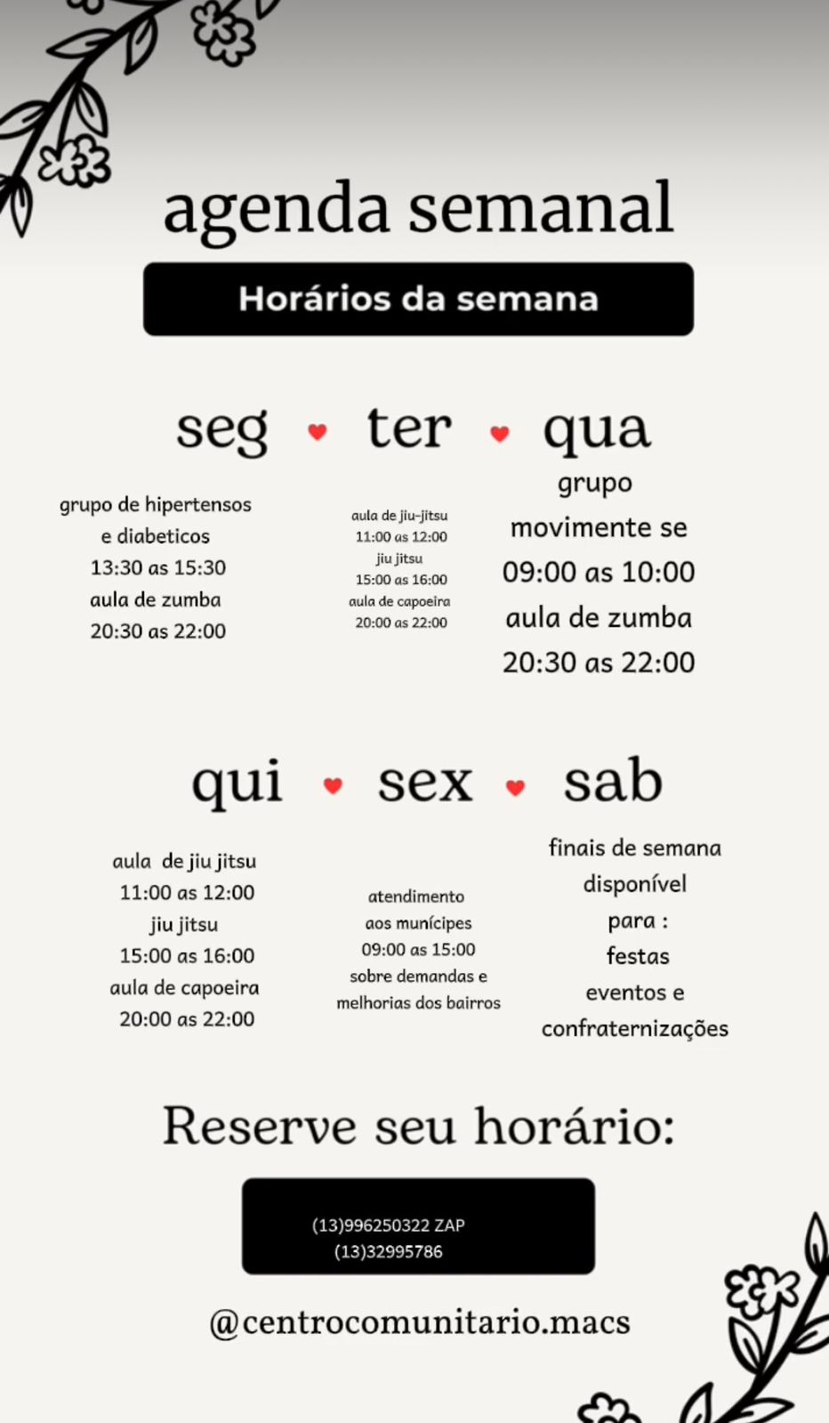 O centro comunitário passou a promover sua programação semanal com foco em saúde, bem-estar e integração social. A proposta é oferecer mais oportunidades aos moradores da região, especialmente onde há menos acesso a atividades.