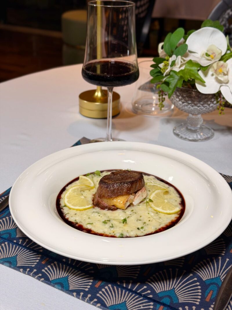 Nos pratos principais, o filé mignon é um dos destaques. Ele é servido com queijo brie, risoto de limão siciliano e redução de vinho tinto. Ainda assim, há outras opções no cardápio.