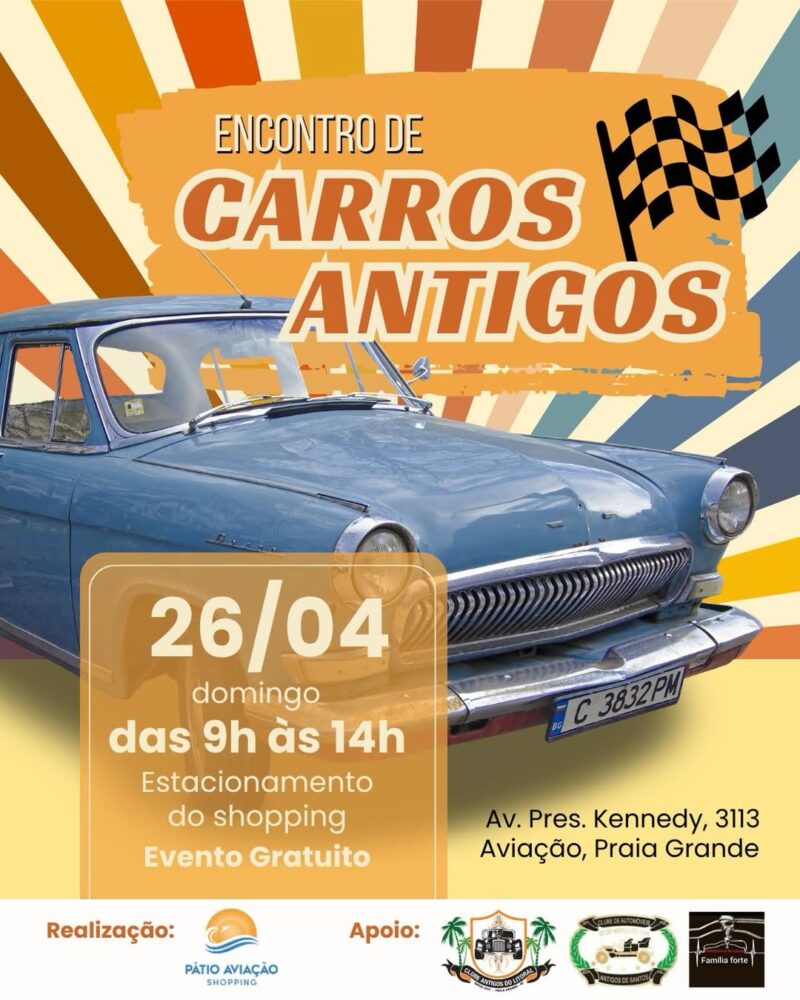 O Shopping Pátio Aviação recebe, no dia 26 de abril, das 9h às 14h, a segunda edição do Encontro de Carros Antigos. O evento reúne apaixonados por veículos clássicos e promete uma programação voltada ao lazer e à convivência.