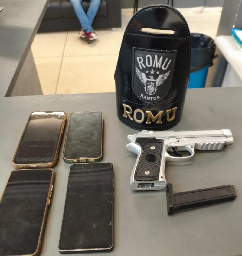 Os agentes apreenderam quatro celulares dentro de uma mochila e uma réplica de arma de fogo usada para ameaçar vítimas.
